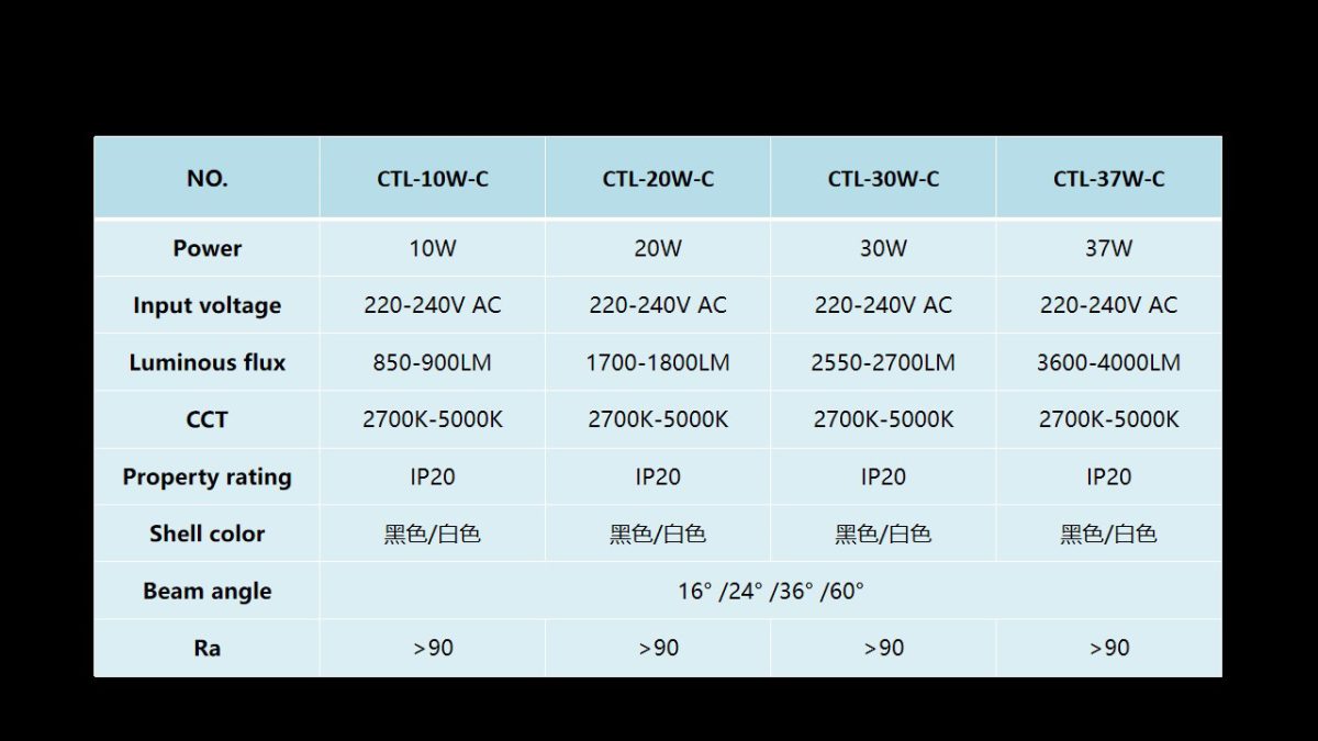 1.Adopt COB chip design, high luminous flux density, up to 100lm / W. Uniform light color anti-glare, good focusing performance. The color rendering index is greater than 90, which restores the true color of the illuminated object.